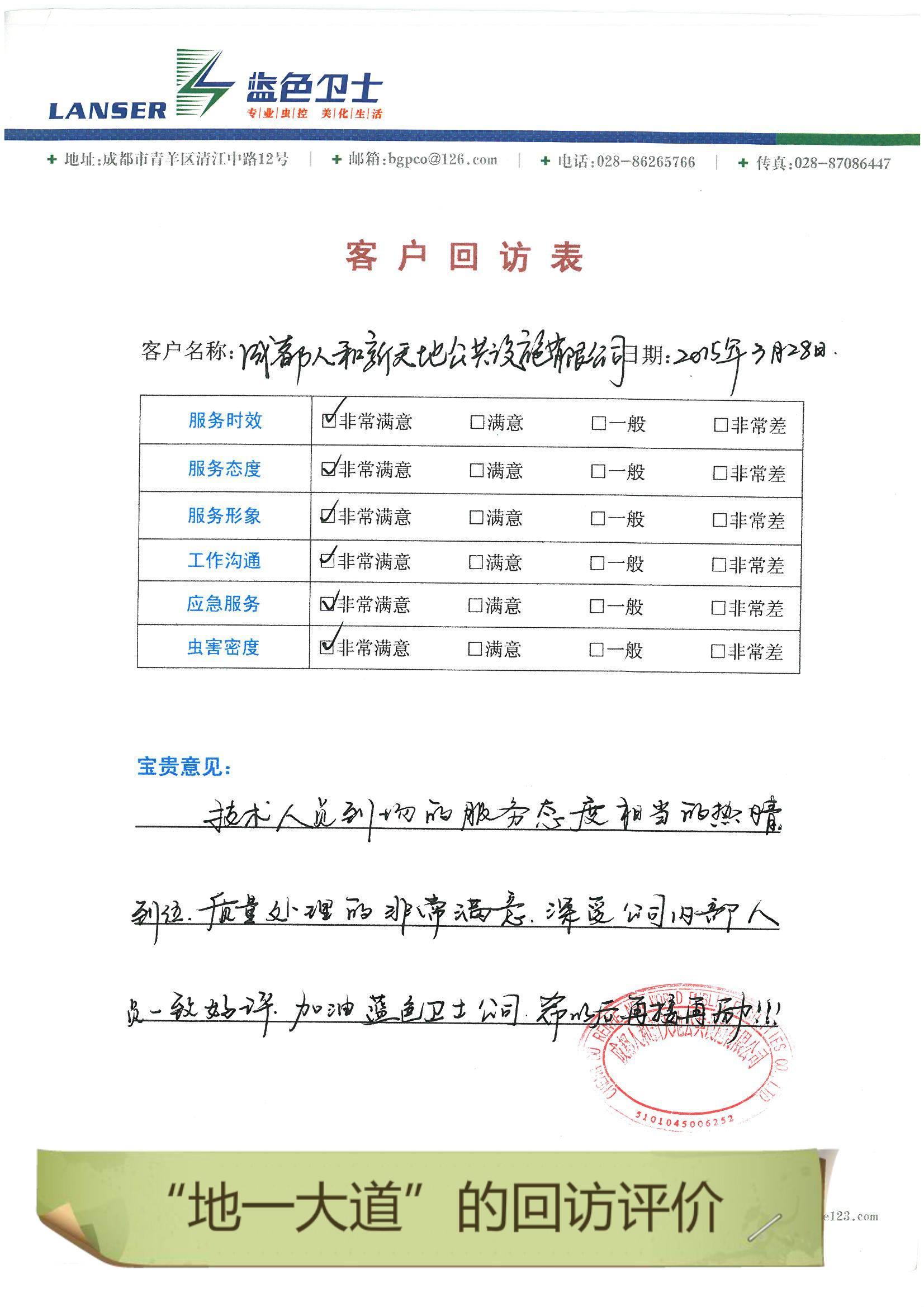 通過合作,對四害的消殺控制的很好,符合項(xiàng)目品質(zhì)要求!